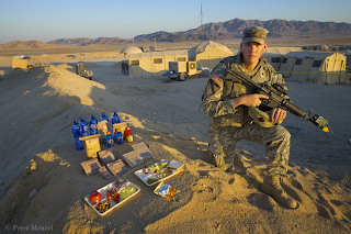 Image copyright Peter Menzel, menzelphoto.com20-year-old US Army soldier, 6 feet 5 inches tall, 195 lbs, typical daily caloric intake: 4,000 calories. Food staples: Mostly instant ready-to-eat meals.