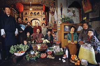 Hace unos años, el famoso fotógrafo Peter Menzel viajó por el mundo y retrató a 24 familias junto a su compra semanal de alimentos. Obtuvo como resultado un valiosísimo documento del cual ofrecemos una parte. Fue publicado como libro bajo el nombre de Hungry Planet (http://www.amazon.com/Hungry-Planet-What-World-Eats/dp/1580086810#reader_1580086810)Bhutan: Los Namgay. Gasto por una semana $5.03.